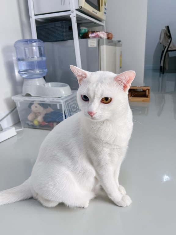 รอยตำหนิ: ลูบหางจะสะดุด น้ำหนักประมาณ 7 kg มือด้านขวานิ้วก้อยไม่มีเล็บไม่หวงตัว สามารถนอนหงายเกาพุงได้