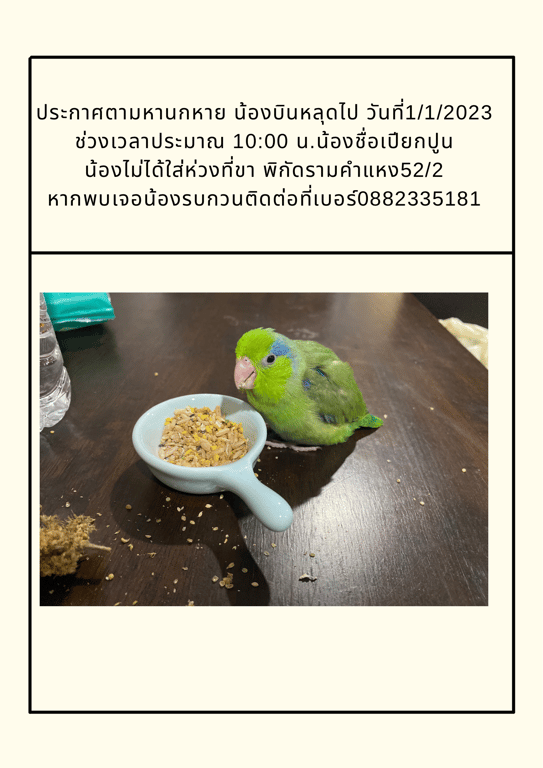 รอยตำหนิ: หางตา ปีก สีน้ำเงิน ท้องเหลือง