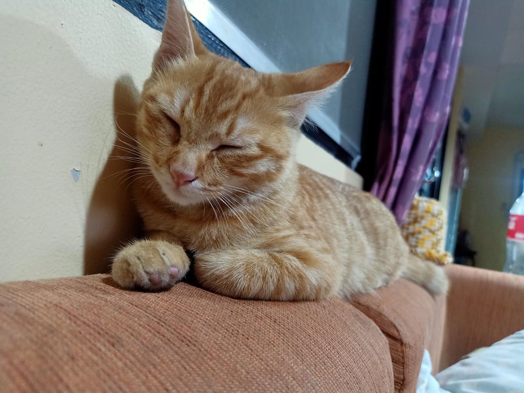 รอยตำหนิ: หางเป็นพวง รู้ชื่อตัวเองแมวส้มเพศเมีย อายุ 1 ปี ทำหมันแล้ว ลูกครึ่งไทย - เปอร์เซีย หางเป็นพวง