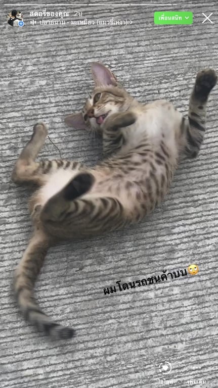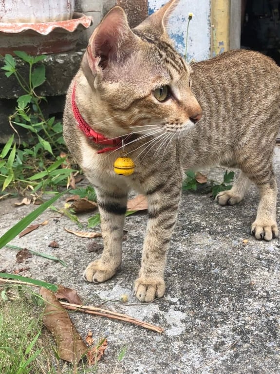 รอยตำหนิ: ตาโตเเบ๊ว หน้าท้องสีขาวลายจุดวัวตาน้องโตแบ๊ว ปล่ยจมูกสีชมพูสันจมูกออกส้มบางๆ เป็นแวขี้เล่นขี้อ้อน เข้ากับคนง่าย หน้าไม่กลม