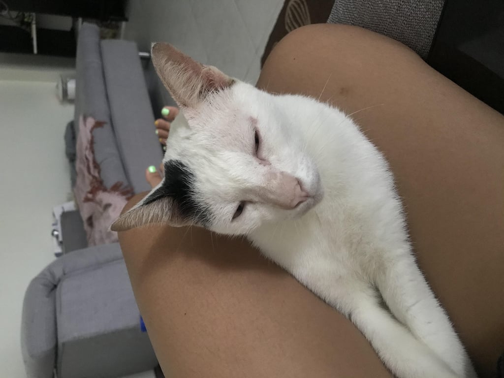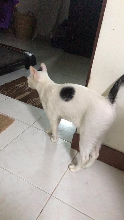 สี: สีขาว มีจุดดำที่ข้างหู ลำตัว และหาง