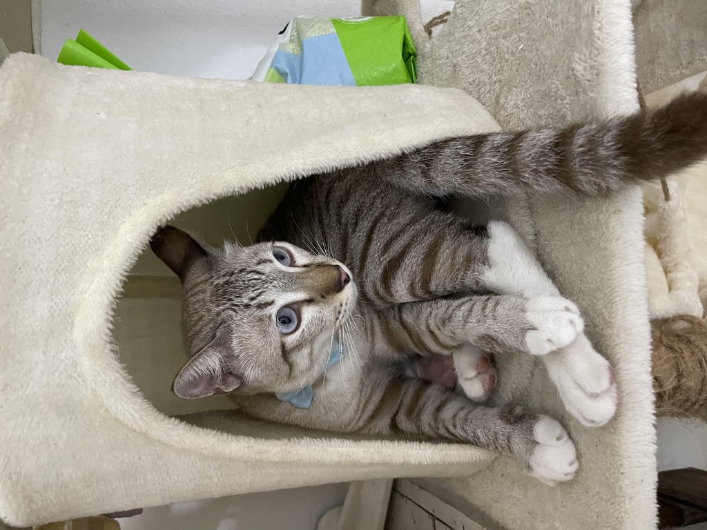 รอยตำหนิ: หางปกติ , น้ำหนัก 5 โล , เท้าหลังขนสีขาวปลอกคอโบว์สีเหลือง น้องไม่ชอบคนแปลกหน้าและแมวอื่น