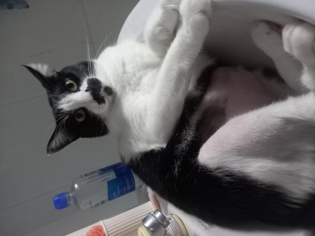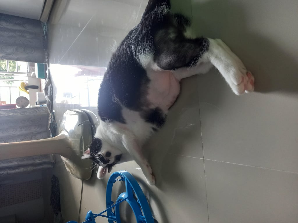 รอยตำหนิ: มีจุดสีดำใต้คางเหมือนหนวดคน , ตาสีเหลือง , ตัวอ้วนเหมือนลูกหมู , แผ่นหลังดำทั้งหมด , พุงพลุ้ยๆสีชมพู , ผิวน้องจะมีส่วนที่ขนล่วงเป็นบางจุดเช่น หน้าผากฝั่งซ้ายบริเวณหู + ท้อง + ขาหน้าฝั่งขวาน้องค่อนข้างขี้ตกใจ , กลัวคน