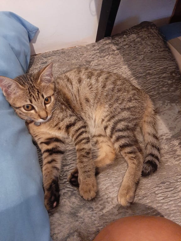 รอยตำหนิ: กกหางหัก ขนฟูปานกลางใส่ปลอกคอสีส้ม