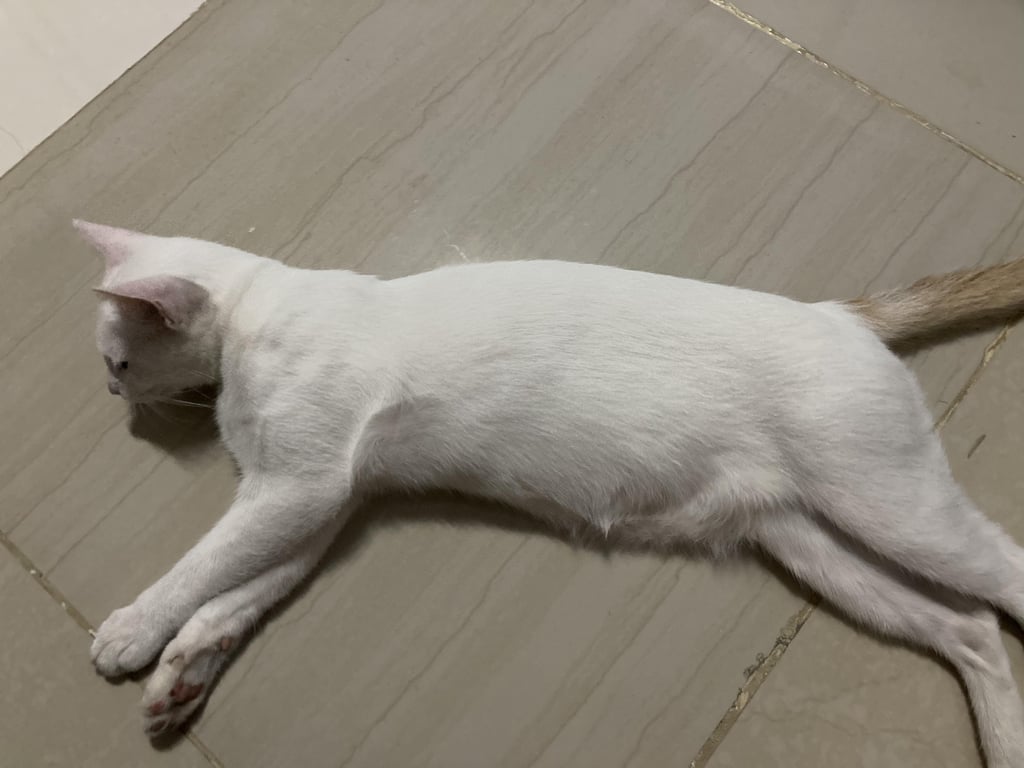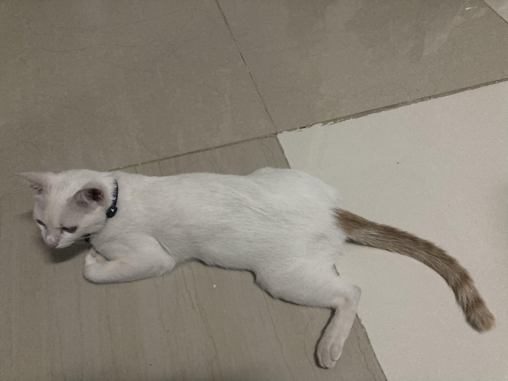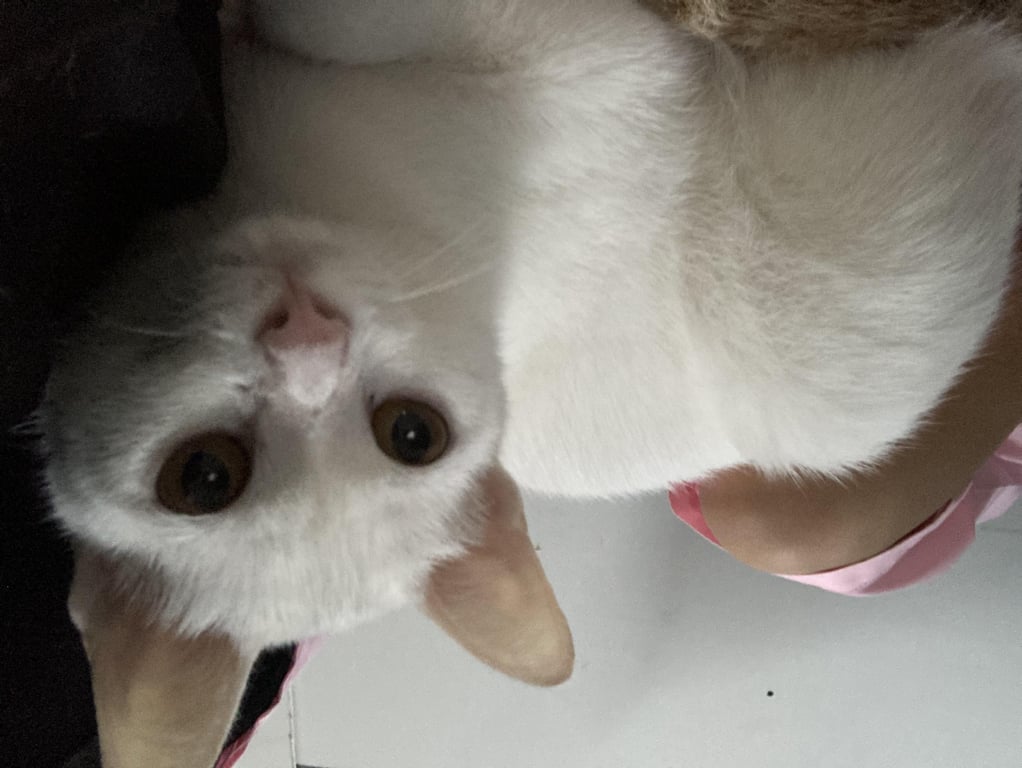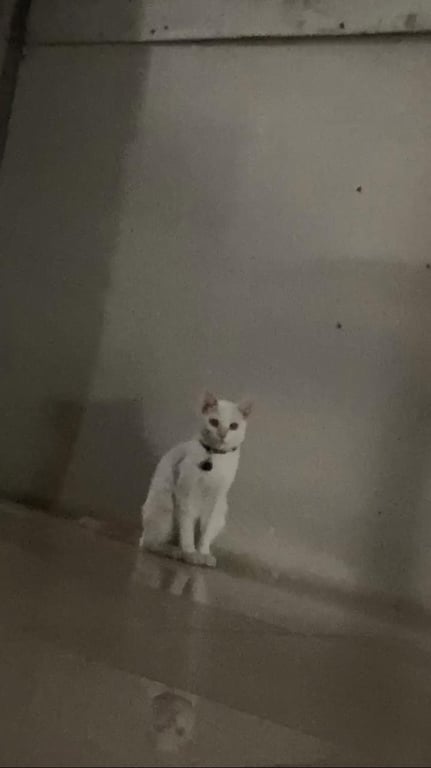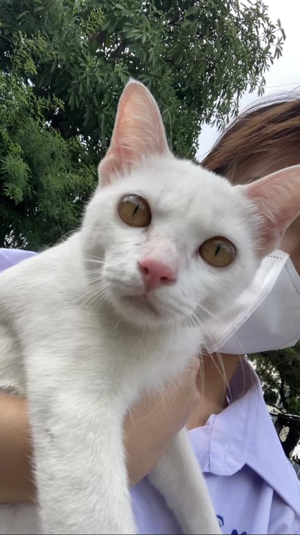 รอยตำหนิ: มีรอยแผลที่แก้ม สวมปอกคอสีดำน้องเป็นแมวกลัวเสียงดัง