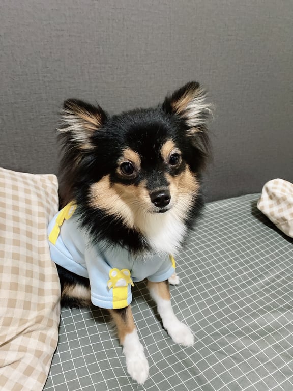 รอยตำหนิ: ขนตัวสีดำแผงคอสีขาวมีขนสีขาวที่ขาเหมือนใส่ถุงเท้า ขาขวาด้านหลังมีเล็บงอกมากเป็นติ่งนิดนึงน้องไม่ดุติดคนมากขี้เล่นชอบเล่น จะเห่าเสียงแหลมมากและก็ขี้อิจฉา เวลาเล่นกับตัวอื่นจะขึ้นมานั่งตักทันทีแล้วจะชอบขู่ใส่ไม่ให้เล่นกับตัวอื่นให้เล่นกับน้องแค่ตัวเดียว
