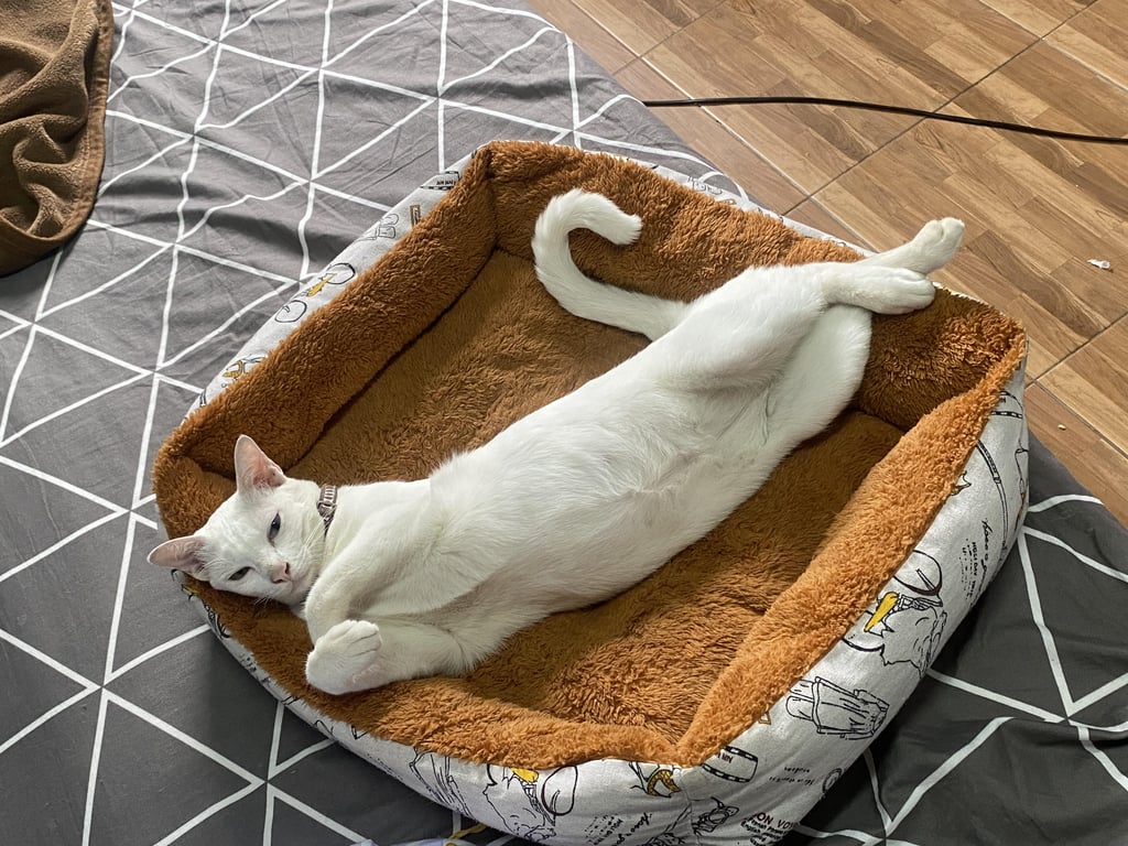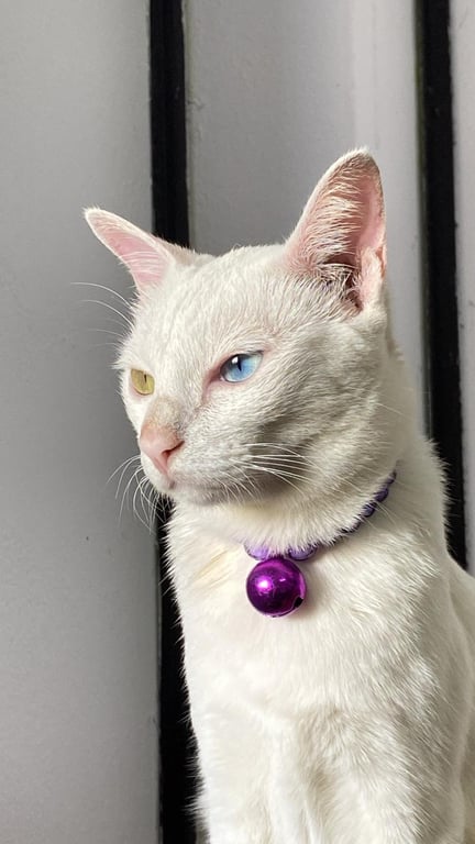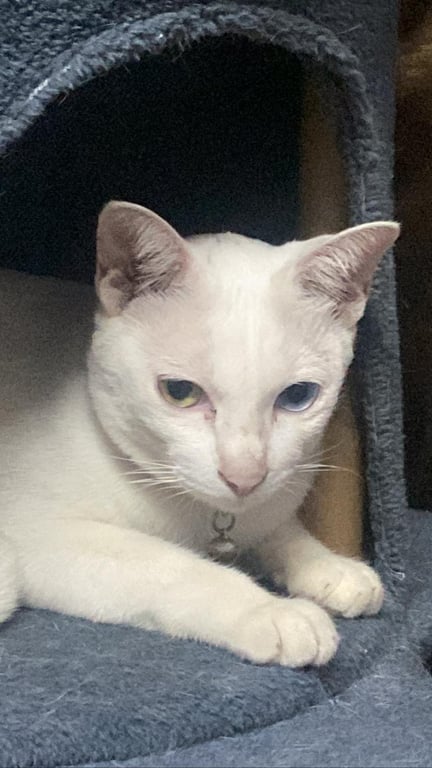รอยตำหนิ: ตาสองสี ล่าสุดที่หายออกไปน้องใส่ปอกคอสีน้ำตาลเหมือนในรูป ตัวค่อนข้างอ้วนเเต่หน้าเล็ก