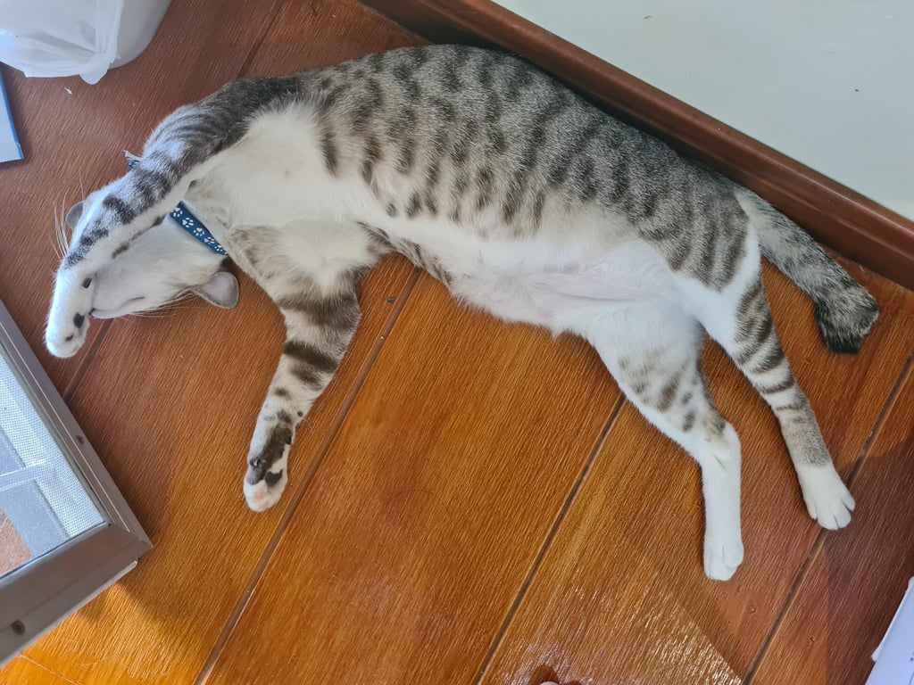 รอยตำหนิ: หางกวัก จมูกดำครึ่งหนึ่ง ถุงเท้าขาว