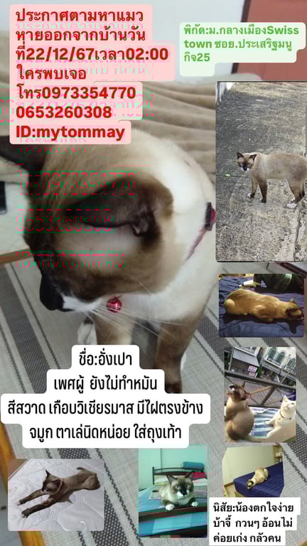 รอยตำหนิ: มีจุดดำข้างจมูกคล้ายๆคนมีใฝขี้ตกใจ ตื่นตนกกง่ายขี้ระแวง กินเก่ง ถ้ารุ้จักก้อขี้อ้อนมากยิ่งเวลาหิวจะอ้อนถ้าไม่เทข้าวก้อจะงับเบาๆ