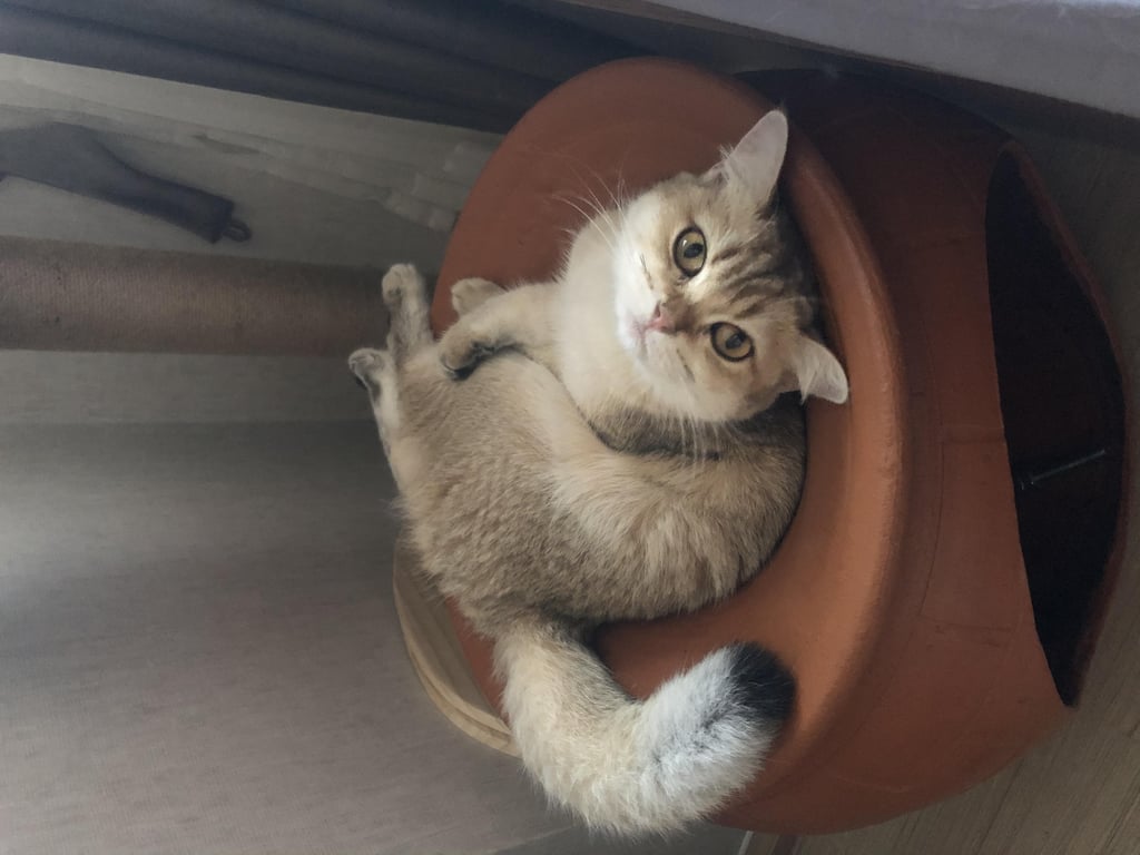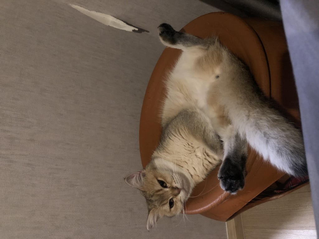 รอยตำหนิ: ใต้ตีนดำทั้ง4 ข้าง ปลายหางดำ น้ำหนักประมาณ2-3 กก. จมูกชมพู