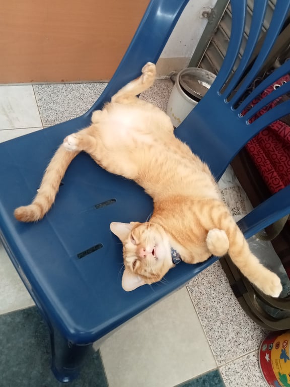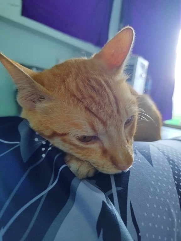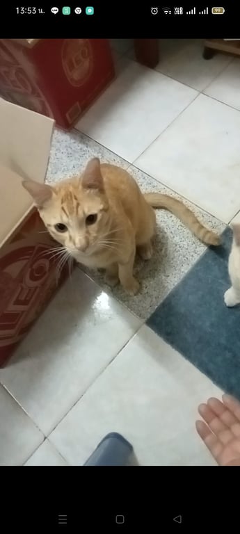รอยตำหนิ: หางยาวตรง ใส่ปลอกคอสีส้มลายegleเชื่อง เป็นมิตรกับคน