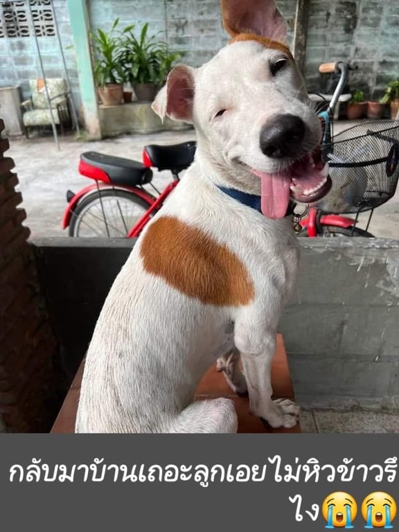 รอยตำหนิ: หูตก1ข้าง น้ำหนักประมาณ 20 กก.น้องขี้กลัวแต่ถ้าเลี้ยงชื่อจะวิ่งเข้าหา ขี้เล่น น้องเป็นพันธุ์ผสม