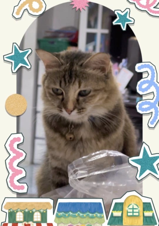 รอยตำหนิ: ขนยาว มีปลอกคอสีน้ำเงินแถบเทาเรืองแสงไม่ค่อยเข้าหาคนแปลกหน้า เรียกชื่อจะรู้เรื่องแต่ไม่สนใจ(มองคนเรียก,ขยับหูเหมือนฟังอยู่) ถ้ามีของกินอาจจะเข้าหา(ชอบกินปลาเส้น)