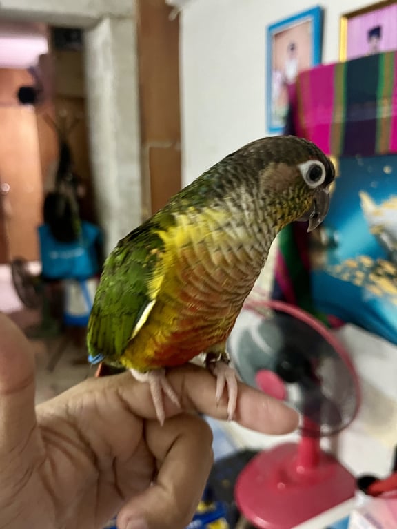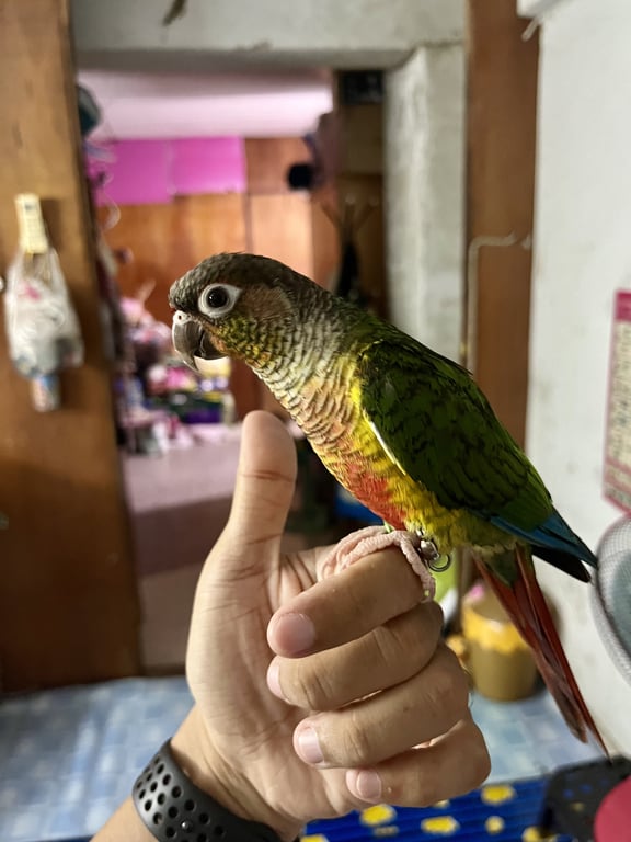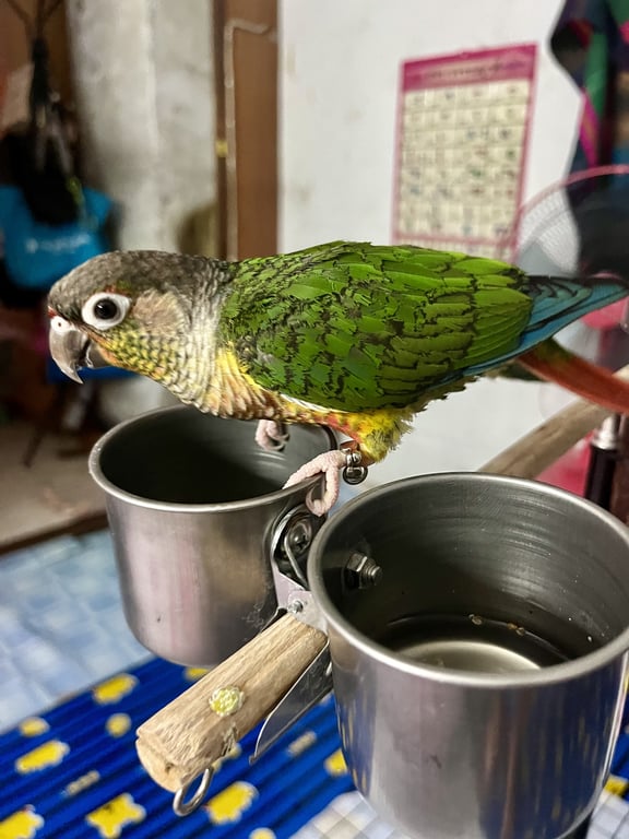 รอยตำหนิ: จะงอยปาก มีลอก เห็นได้ชัด มีห่วงเงินแบบเชือกจูงที่ข้างซ้าย มีห่วงสีเขียวข้างขวา สลักชื่อและเบอร์โทรน้องเชื่องติดคน สามารถเรียกชื่อ เรียกพ่อคร๊าบ แม่คร๊าบได้ น้องชอบเกาหัวตัวเอง เป็นจุดสังเกตุ
