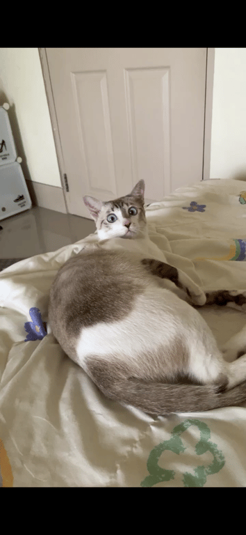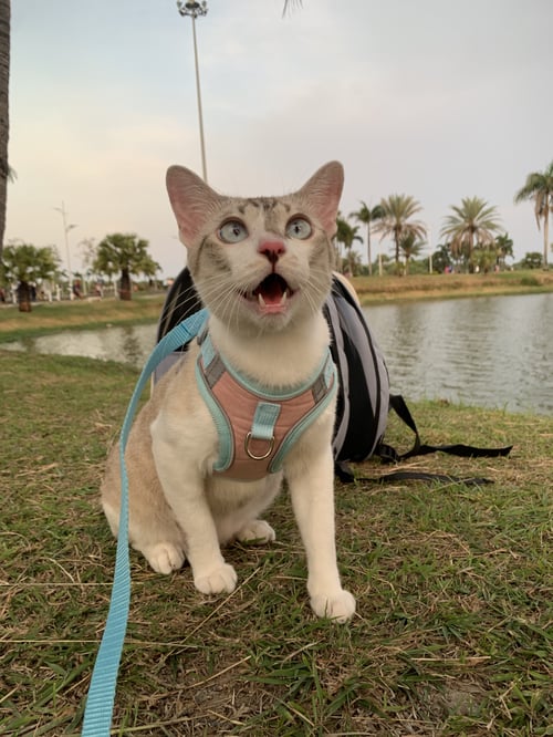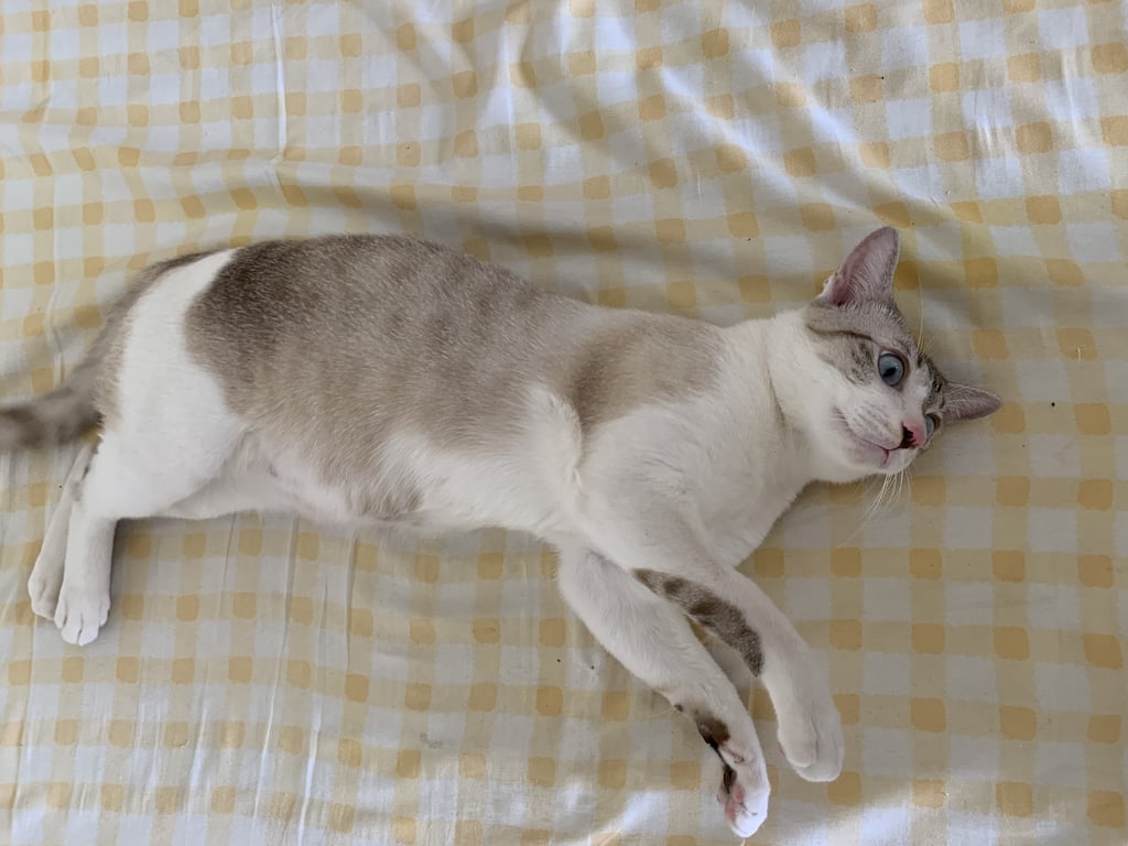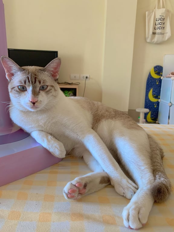 รอยตำหนิ: ตาสีฟ้า ตัวอวบๆ ไม่มีปลอกคอแมวไทยผสมวิเชียรมาศ