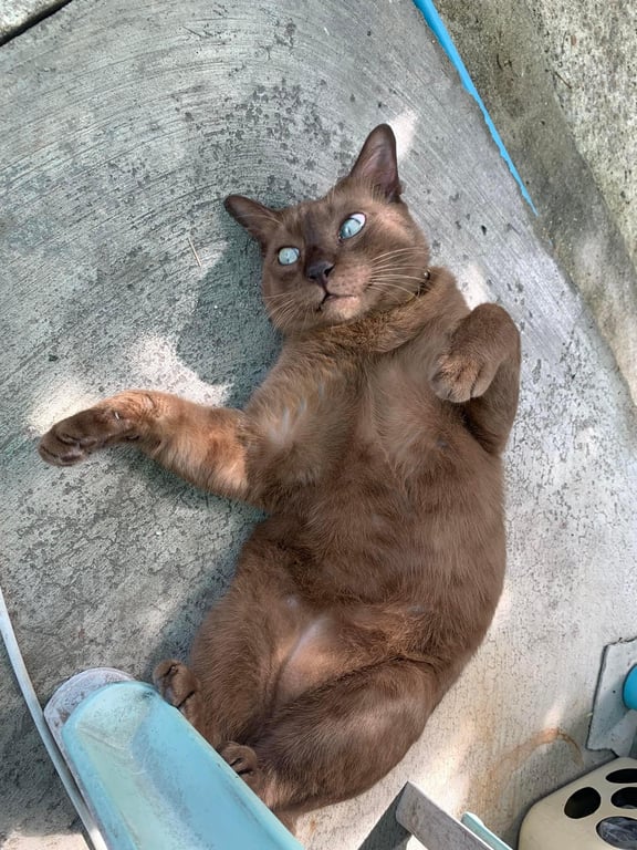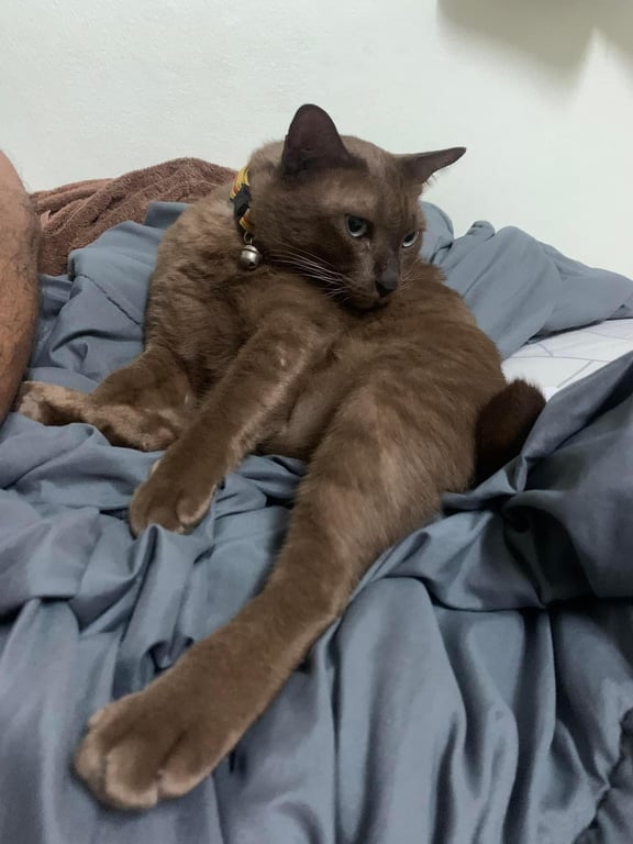 รอยตำหนิ: หางกวัก มีรอยแผลแถวๆ ที่หน้าตอนที่หายออกจากบ้านไม่ได้ใส่ปลอกคอ เป็นแมวที่ขี้กลัว กลัวเสียง กลัวคน ชอบทำหน้างอๆ