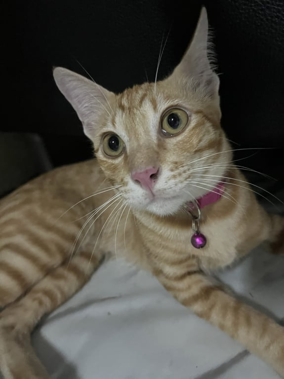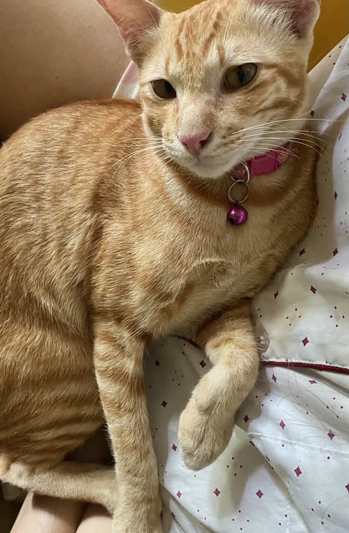 รอยตำหนิ: สีส้ม ตัวยาว ผอม หางยาว ใส่ปลอกคอสีชมพูน้องชอบออกไปเล่นนอกบ้านแล้วปกติก็กลับมาเอง ไม่เคยออกไปนานข้ามคืน แต่ครั้งนี้ยังไม่กลับเข้าบ้าน เป็นห่วงมากค่ะ เบอร์โทร 0927904091 K.เตย