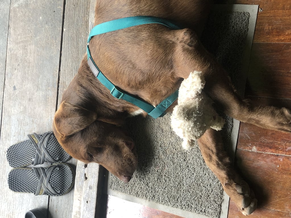รอยตำหนิ: รอยด่างที่คอ / แผลที่ปากนิสัยขี้เล่น ช้า เฉื่อยๆ ไม่ค่อยเข้าหาคนเท่าไร แต่เป็นหมาขี้ตกใจ