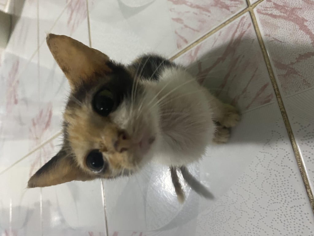 รอยตำหนิ: ปลายหางสีขาว ข้างตัวมีลายจุดเหมือนดอกไม้น้องร้องไม่มีเสียง เสียงแหบ แต่ติดคน