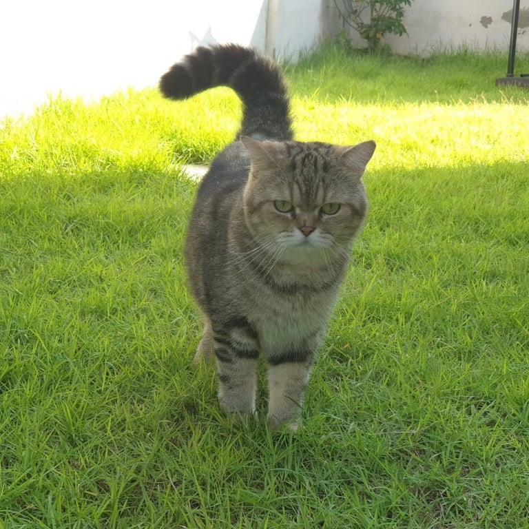 รอยตำหนิ: ขาสั้นกว่าแมวทั่วไป หูขวาอักเสบ ลายด้านข้างเป็นวงกลม
