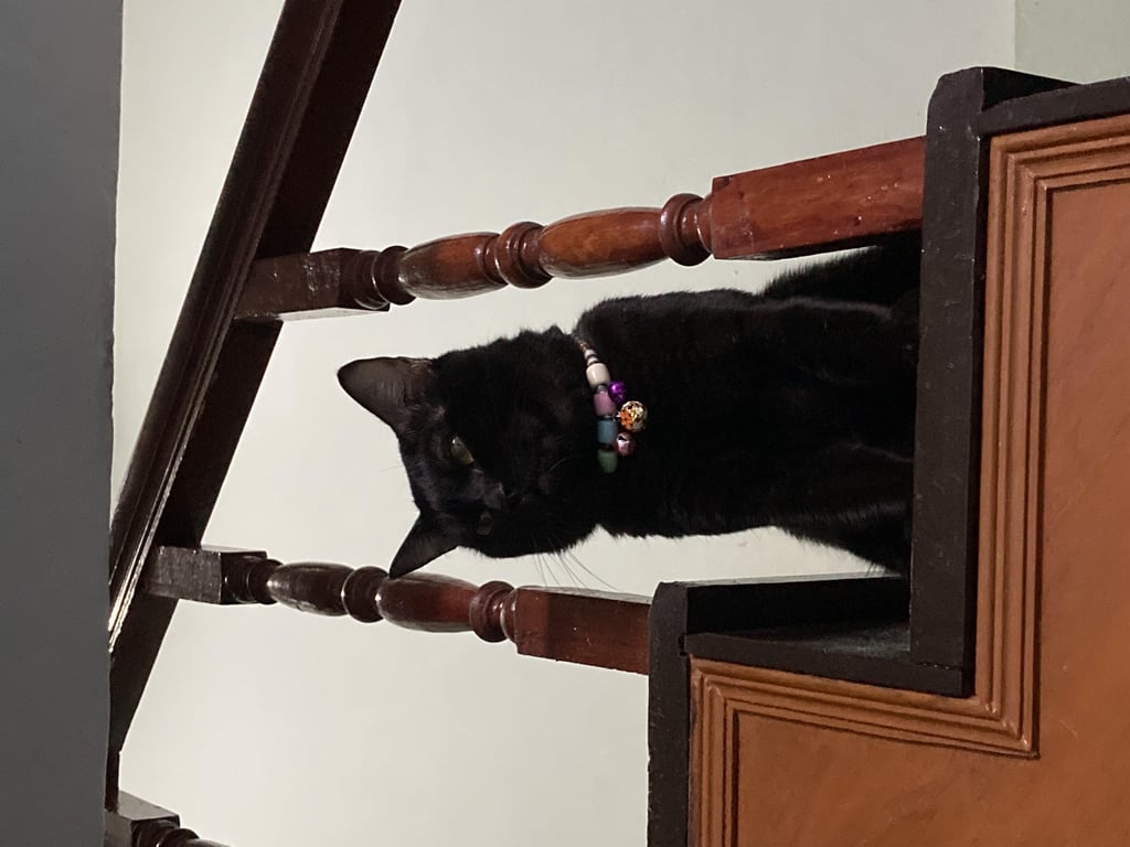 รอยตำหนิ: หางยาว ปลายหางขอด สีดำทั้งตัว รูปร่างปราดเปรียว ไม่อ้วนน้องมีสีขนดำทั้งตัว ไม่มีขนสีอื่นแทรก พุงขาว อายุ 8 ปี ยังไม่ได้ทำหมัน ตัวใหญ่ รูปร่างปราดเปรียวไม่อ้วน