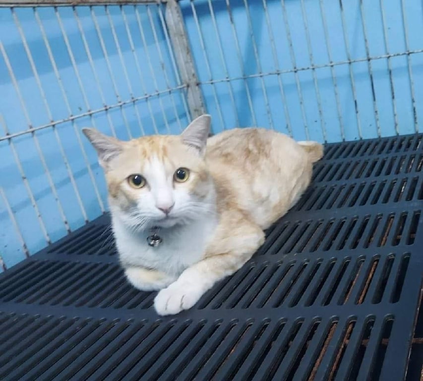 รอยตำหนิ: อุ้งฝ่าเท้าซ้ายมีแผล ปลอกคอสีฝ้า หน้าท้องสีส้มเข้มสองขีดก่อนหายมีคราบน้ำมันติดตามตัวบริเวณหน้าอกและอุ้งเท้า