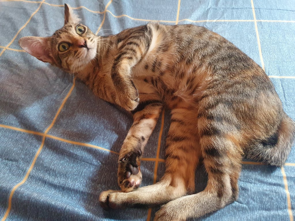 รอยตำหนิ: เป็นแมวหางขด ชอบทำหน้ามองแรงมากๆ เป็นแมวขี้กลัว