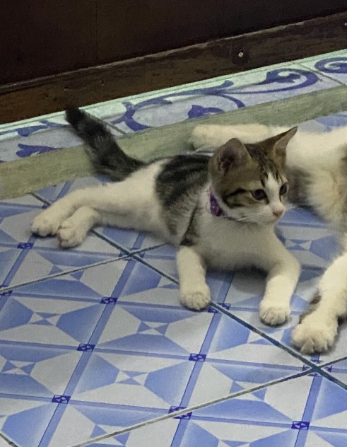 รอยตำหนิ: มีขนสีน้ำตาลอ่อนๆตรงคางเล็กๆวันที่หายใส่ปลอกคอสีม่วงชมพู อายุ 5-6 เดือน อุ้งเท้าสีชมพู ขี้อ้อน ชอบเอาตังเอาหัวถูคน
