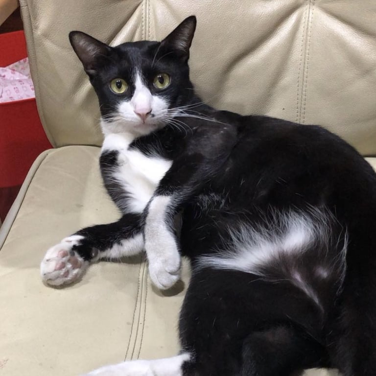 รอยตำหนิ: มีไฝ 1 จุดข้างจมูกด้านซ้าย หางยาวขอดเป็นพวง ขาหน้าซ้ายเป๋หายตั้งแต่ปี 63 ตอนนั้นน้ำหนักน่องประมาณ 5.5 กก. ตอนนี้อาจจะผอมหรือโทรมลง ขาหน้าซ้ายเป๋เพราะน้องเคยขาหักและมีการดามเหล็กอยู่ข้างใน