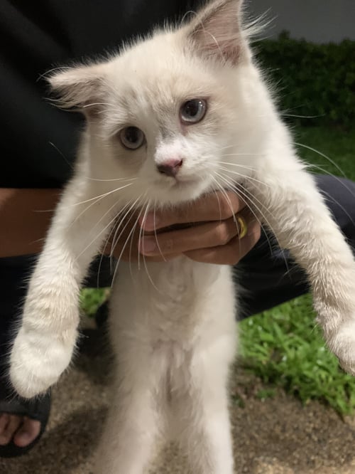 หลังใบหูมีสีดำอ่อน ทั้งสองข้าง ขนฟูนิดหน่อย