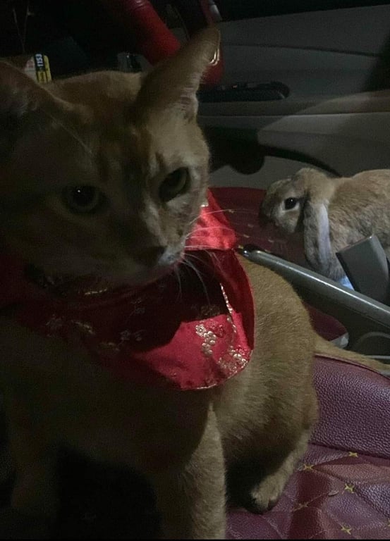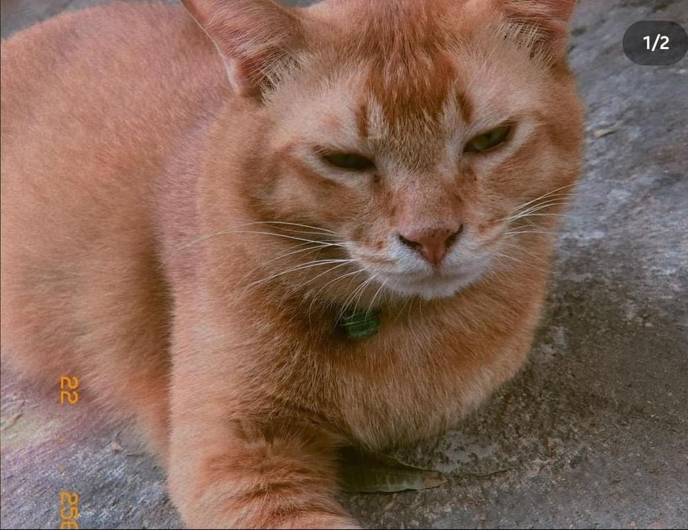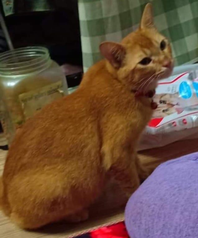 รอยตำหนิ: ตัวอ้วนกลม ใส่ปลอกคอสีชมพู ด้านหลังมีขนแหว่งจนเห็นผิวหนังนิดยึง