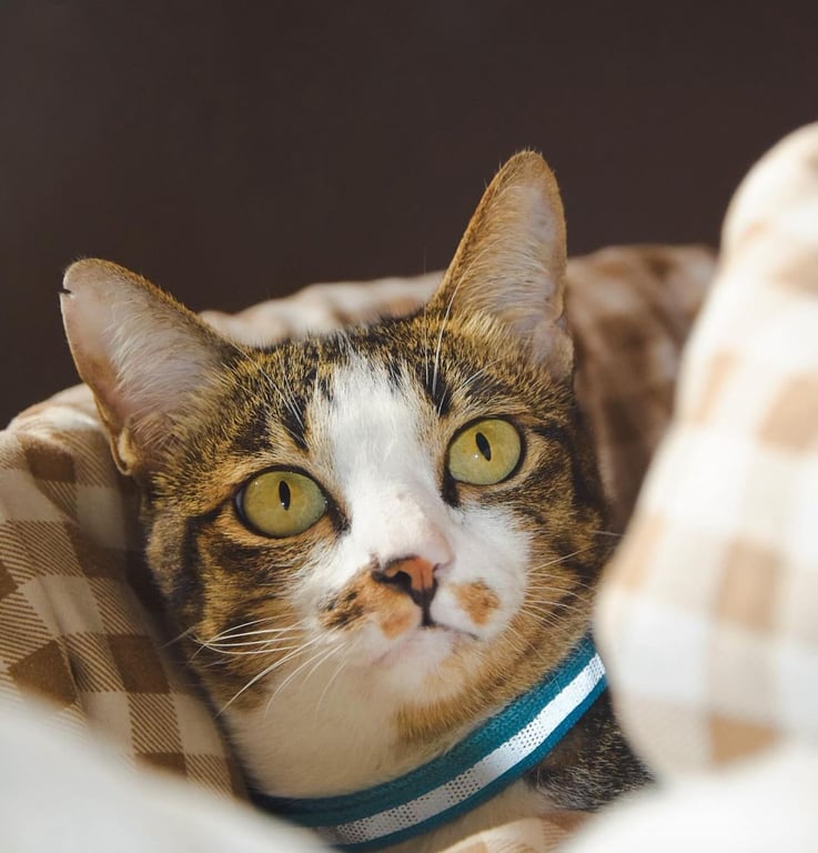 ปลอกคอลายพรางทหาร กระดิ่งสีเขียว ตาสีเหลือง เป็นมิตรกับคน