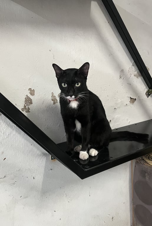 สี: ตัวดำ ปาก อก พุง สีขาว มีถุงเท้าขาว 4 ขา ถุงเท้าไม