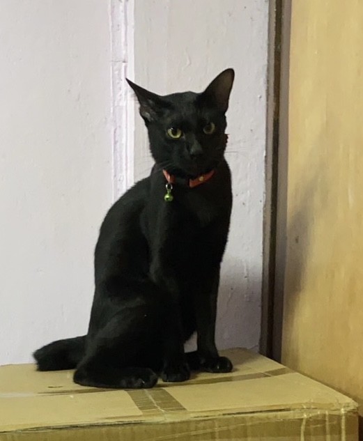 รอยตำหนิ: หางกุด น้ำหนักประมาณ 4กิโลพี่ดำใส่ปลอกคอสีแดง มีนิสัยเข้ากับคนง่าย ขี้อ้อน