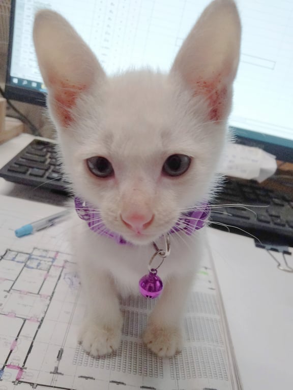 รอยตำหนิ: ใส่ปลอกคอสีม่วง ตาสีฟ้าทั้งสองข้าง หางงอและคดเกือบๆช่วงปลายหายไปวันที่ 15 ตุลาคม 2565 ช่วงเวลา 19.00 น. ไกล้กับโรงเรียนราชวินิตเด็ก