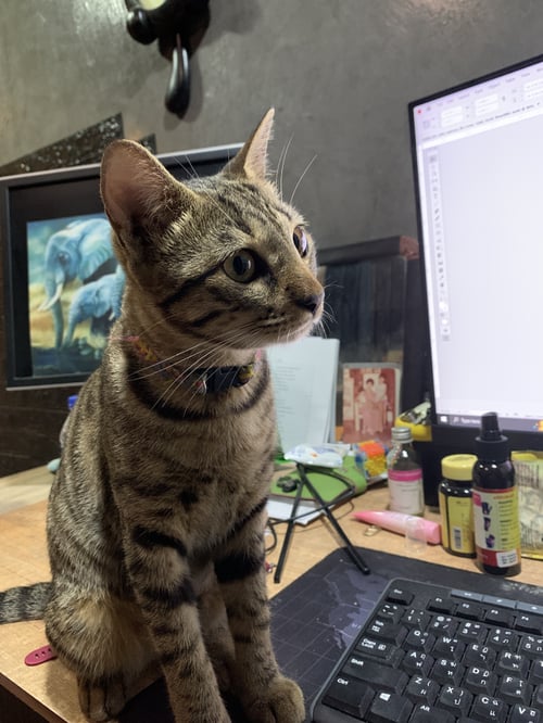 รอยตำหนิ: หางตรงยาว ท้องมีลายสวมปลอกคอสีแดง