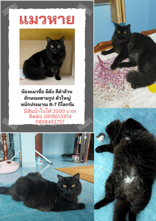 รอยตำหนิ: มีรอยผ่าทำหมัน ขนหูยาว ตาสีเหลือง ปลายหูแหลม